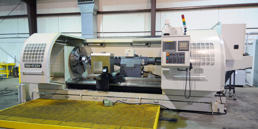 - GANESH 44″ X 120″ MDL. GTD-44120CNC, new 4/2013, Fanuc 0iTD CNC control, 12 pos. vert. turning turret, 39-1/2″ dia. 4-jaw front chuck, 24-1/2″ dia. 4-jaw rear chuck, 12-1/2″ spdl. hole, spds: 7-350 RPM, in (4) gear ranges, 30 KW spdl. drive motor, pwr. travel tailstock, (2) roller jaw steadyrests, H.D. boring attach., elec. enclosure chiller, S/N 13074
