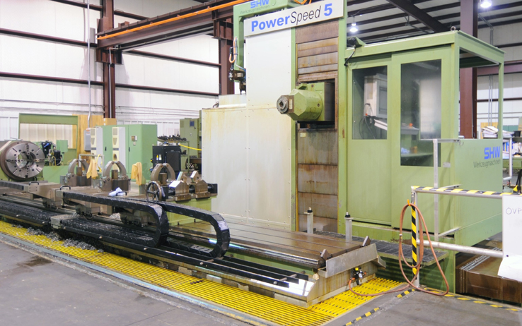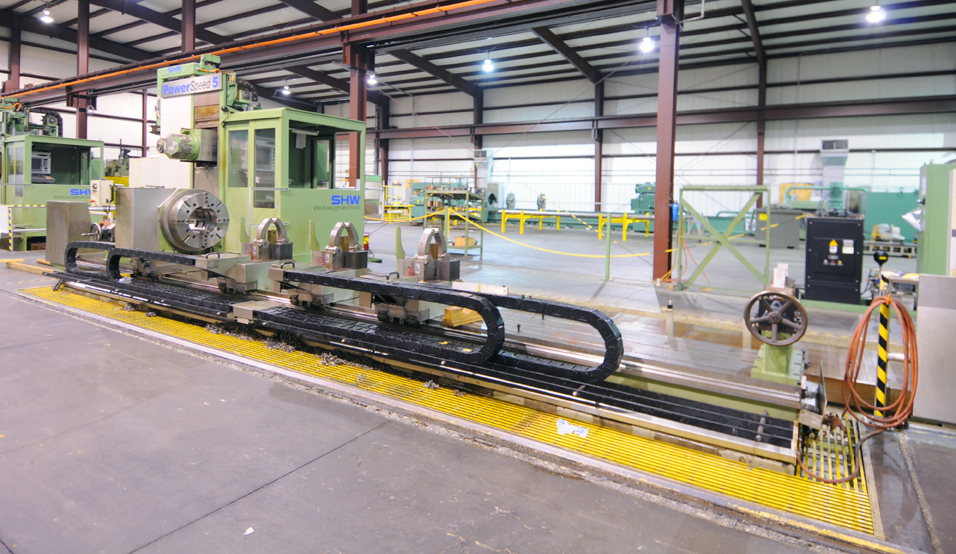 - (4) SHW MDL. POWER SPEED 5, new 2007, Heidenhain TNC530 CNC control, 39.37” x 354.3” T-slotted work table, 314.96” X, 63” Y, 51” Z-axis travels, 1181 IPM rapids, 360 deg C axis head swivel, 180 deg. A axis head swivel, CAT-50 spdl. taper, spdl. spds: 36-6000 RPM, 45 KW spdl. drive motor, 90 pos. ATC, Roll Work Holding & Rotation System Including: FIBRO CNC B-axis vert. rotary table w/13.77” thru hole, 27.5″ center height, 5500 lb. max. rotary table cap., 27.5” 4-jaw chuck, (3) Autoblock hyd. Steady rests, 3.93” to 13.77” cap., probe system, (1) manual support rest, scale feedback system, roller chip shields, S/N 5236, S/N 5237, S/N 5238, S/N 5239