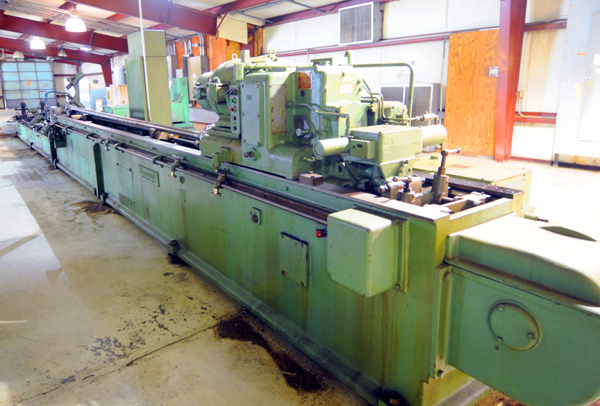 - BARNES MDL. 6, approx. 16′ max. stroke, 18″W. x approx. 16’L. fixture table w/ (2) roller chain rests & steadyrest, Barnes paper filter magnetic coolant system, 5 HP hone drive, (2) 16′ hone mandrels, wide array of honing heads up to 7-1/2″ dia., assorted hone tooling S/N 9028