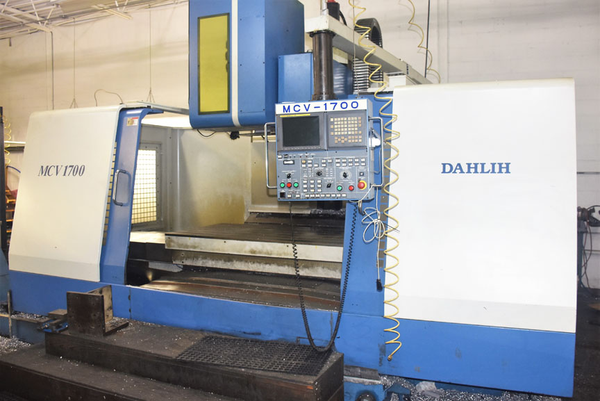 • DAH LIH MCV-1700 CNC Vertical Machining Center, with Fanuc 21iMB CNC, Travels: X-66.92””, Y-31.5”, Z-29.53”, 74.8” x 39.8” table, 4400 lb. max. work weight, 32 ATC, 6000 RPM, 30 HP motor, CAT 50 taper, through spindle coolant, chip conveyor, SN 3001090213, New 2006