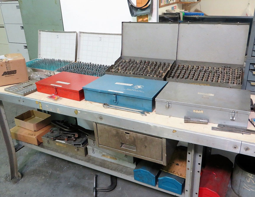 • Tool Holders, Tool Carts, Vises, Fixtures, Perishable Tooling, Carbide Inserts, Hand Tools, Clamps, Fixtures, Tombstones, Stanley Tool Cabinets, Racking & Shelving, 54” x 37” Granite Surface Plate, Block Gage Sets, Pin Gauge Sets, Mitutoyo Height Gage, Shop Support Equipment, Ladders, Desks, & Much More!