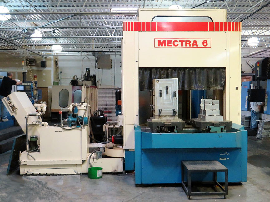• MANDELLI Mectra-MF6 4-Axis CNC Horizontal Machining Center, with Fanuc 15M CNC control, Travels: X-32.28”, Y-29.92”, Z-29.92”, dual 24.8” x 24.8” pallets, full B-Axis rotation, 3300 lb. workpiece weight, 30 HP motor, 100 ATC, 20-4500 RPM, CAT 50 taper, through spindle coolant, chip conveyor, S/N not available