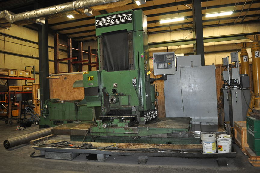 Giddings & Lewis Mdl. 987-15HS Traveling Column CNC Horizontal Machining Center, with New Fanuc Oi control, travels: x-72”, y-36”, z-24”, 30-3110 RPM spindle speed, CAT 50 spindle taper, 20HP DC continuous spindle, 48-tool changer, coolant flood & low pressure thru spindle, chip conveyor, [2] 22” OD built-in pallet rotary tables, B-pallet rotation 360,000 position, 84” length x 25” wide pallet size, S/N: 987-5028-88 [Located @ 5320 S. National Dr, Knoxville, TN 37914]