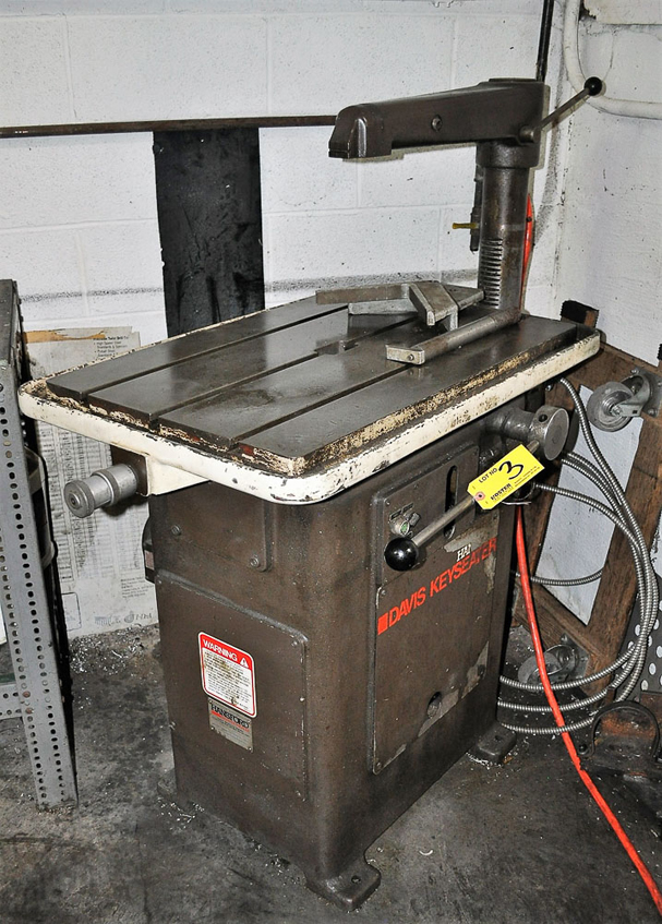Hansford Davis Mdl. 15 Keyseater, with 1/16” – 1-1/2” capacity, 31” x 20” table, 19” throat, 12” max work height, 1.5” table movement, 4.5” stroke, 45 SPM, 4” cutter, 8” cutter, 12” cutter, 2HP motor, 1300# weight capacity, 40” x 44” x 48”, 440v, 3ph, S/N: 151072