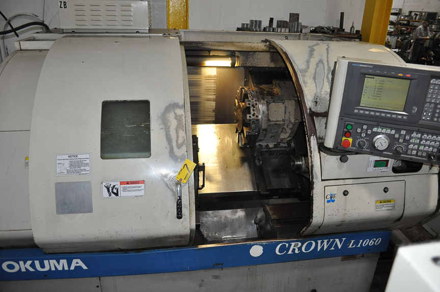 Okuma Mdl. 762S-BB Crown Big Bore, with 21.65” max swing over bed, 15.75” max swing over cross slide, 10.63” max turning diameter, 19.68” max machine length, 3.15” spindle bore, travels: x-7.28”, z-20.47”, A2-8 spindle nose, 3500 RPM spindle speed, 12-station turret, 10” Kitagawa chuck with hard jaws, OSP700L conversation programming, 23HP spindle, 9900# max weight, chip conveyor, S/N: 1161