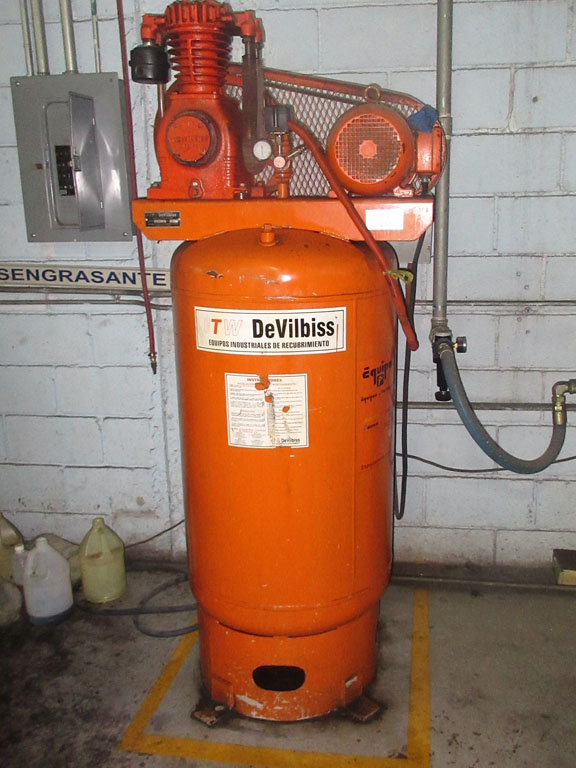 DEVILBISS TAP 5050V AIR COMPRESSOR, s/n T040215, (approx) 100 Gallon Tank, 230/460V, 60Hz, Weight 500, Dimensions 24 x 30 x 77 Inches