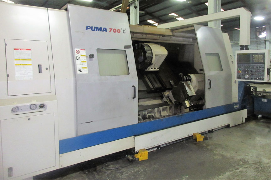 2007 DOOSAN PUMA 700 HIGH-PERFORMANCE HORIZONTAL TURNING CENTER, s/n PM600532, 80″x18″, 12 Tool Post, 18″ 3-Jaw Chuck, Max Speed 1800 RPM, 6.5″ SPH, M12 Hydraulic Transport Accessory, Fanuc Series 21i-TB Controller, 75 KVA Transformer, Turbo Systems Chip Conveyor, 440V, Weight 35000, Dimensions 260 x 113 x 100 Inches
