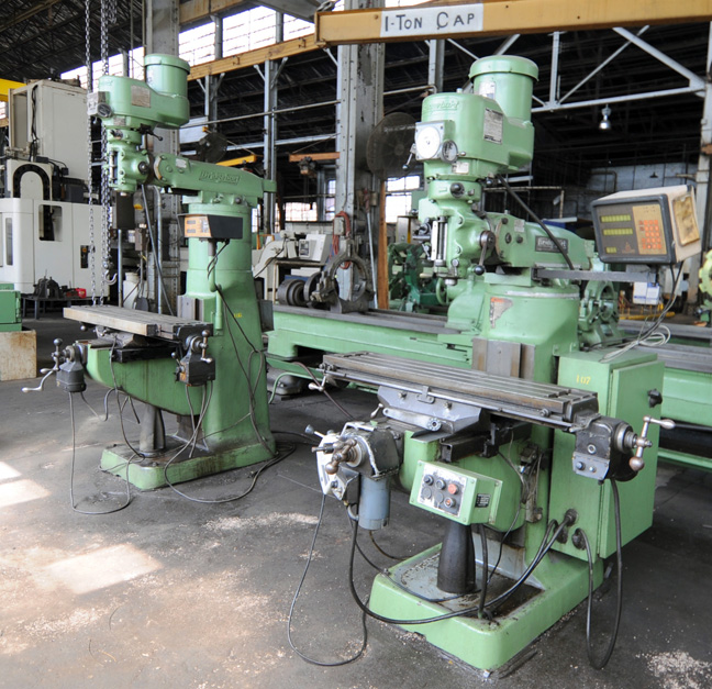 BRIDGEPORT SERIES 1 VERTICAL TURRET MILL, 9″ x 48″ table, 2-axis D.R.O., (2) pwr. feed units, (2) 6″ riser blocks, chrome ways, S/N 1342