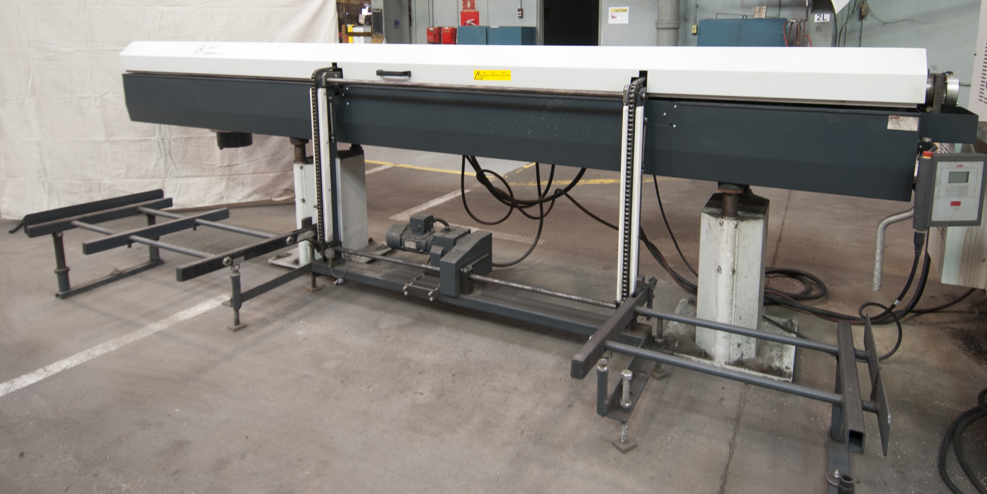 - MODERN MACHINE TOOL 8LD tube cut off machine with ALLEN BRADLEY PLC control, 8” max cutting diameter, 90’ per minute feed rate, 7.5hp electric motor, 912 RPM MODERN MACHINE TOOL 8LDS bar feeder, s/n: n/a