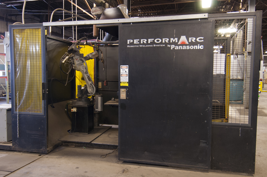 - PANASONIC PERFORM ARC 6 axis robotic welding cell with PANASONIC PAR61R1 6 axis welding robot s/n: n/a , PANASONIC YA-1NPA 2 automated drive system with pendant control, PANASONIC welding unit and feeder, PANASONIC welding jig, 13’ x 9’ x 90” enclosure with light curtains, s/n n/a