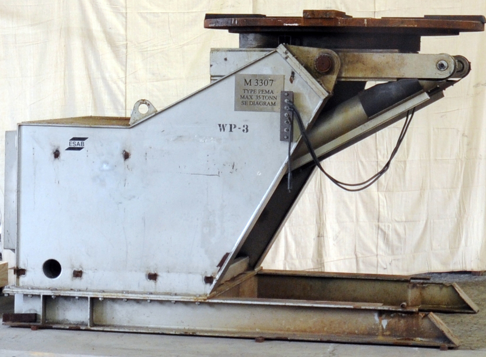 • ESAB/PEMA 35000F 78500 lb. welding positioner with 120″ diameter table, variable speed drive .005-.4 RPM’s, hydraulic tilt & rotation, pendant control, s/n A1960