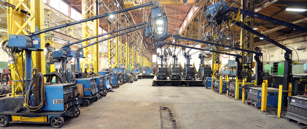 • GOURAN welding manipulator with 21′ horizontal travel, 12′ vertical travel, LINCOLN IDEALARC 1000 welder, LINCOLN NA-5 automatic wire feeder w/ submerged arc welding head & flux hopper, PANDJIRIS precision ball bushed slides, INVINCIBLE dust collector