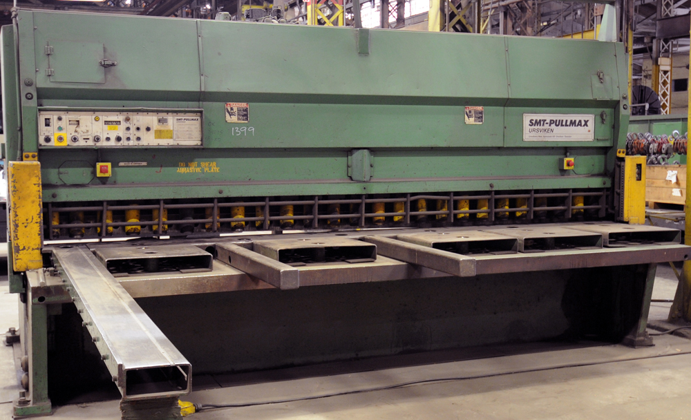• SMT PULLMAX (1981) GSA 740 13 ½’ X ½” hydraulic shear with 10′ squaring arm, power rake adj, power gap adj, 17″ throat, 60″ front operated power back gauge s/n 2987