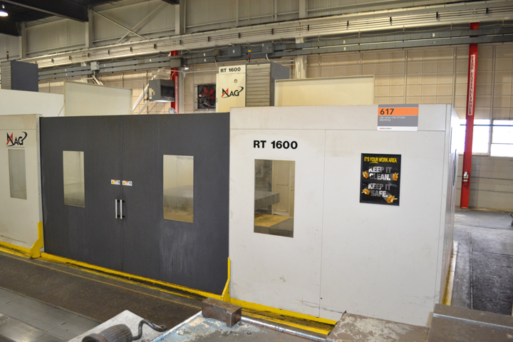 6.1” GIDDINGS & LEWIS RT 1600 CNC TABLE TYPE HORIZONTAL BORING MILL, Siemens 840D, 120 Station ATC, Travels: X-141.7”, Y-102.36”, Z-49.21”, W-78.74”, 63” x 98.4” B-Axis Rotary Table, 55,000 LB Weight Capacity, CAT #50 ANSI Spindle Taper, 4-Speed Ranges to 3500 RPM, Big Plus Spindle Option, Chip Enclosure, Chip Blaster, Thru-Spindle Coolant, Chip Conveyor, Part Probe, 984 IPM Rapid Traverse, 37/56 KW (75 HP)
