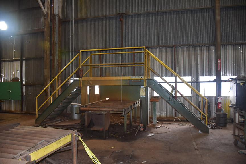 ADDITIONAL CONVEYORS AND TRANSFERS, Consisting Of: 60’ Roller Conveyor Inside: 6 X 100” X 52.5” Working Width X 6 X 3.5” Diameter Rollers, 38” Conveyor Height; Approximately 60’ Conveyors And Transfers Outside; 6 X 100” X 52.5” Working Width X 6 X 3.5” Diameter Rollers, (4) Transfer Conveyors; Hydraulic Power Supply And Pedestal Controller Platform With (2) Sets Of Stairs, 38” Conveyor Height; Note: This Conveyor System Is Not Complete, Just Selling These Components